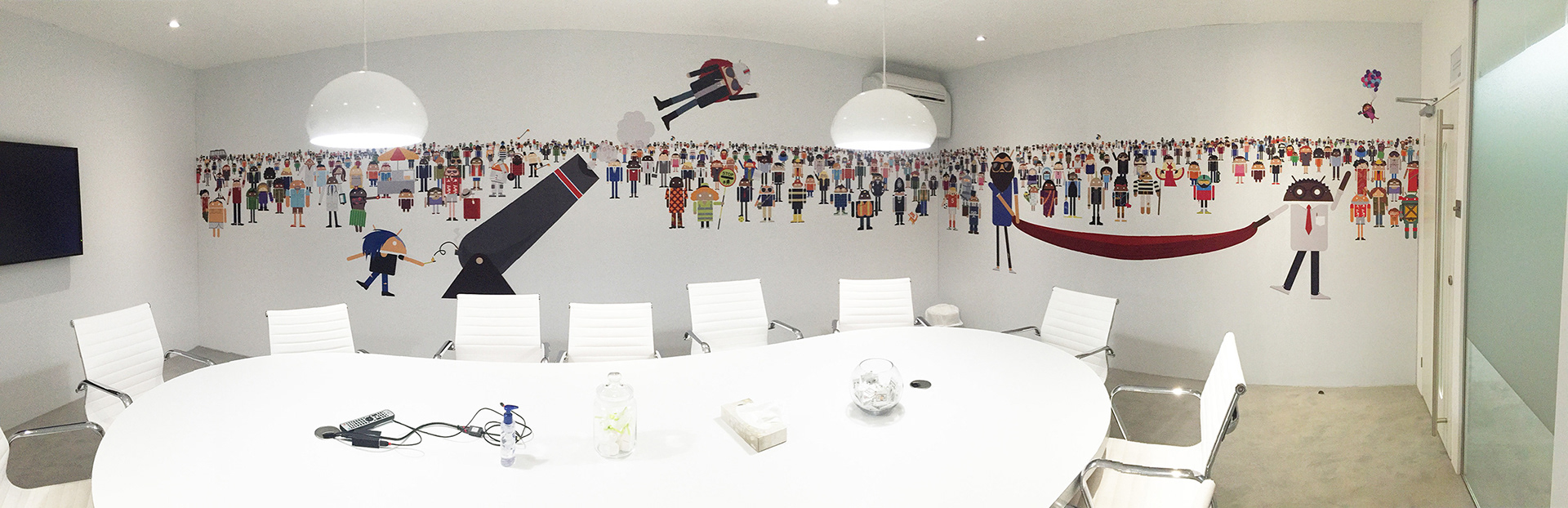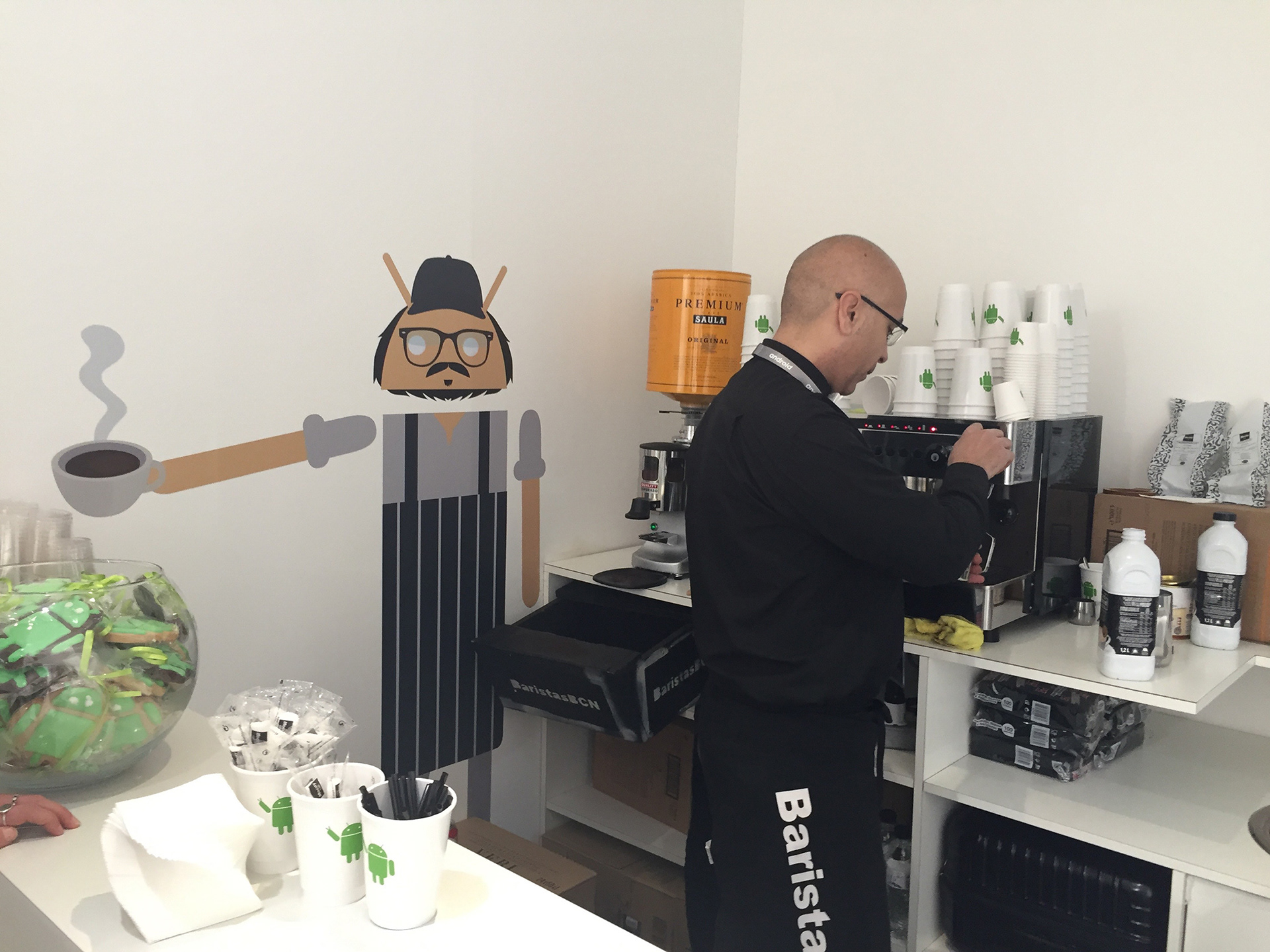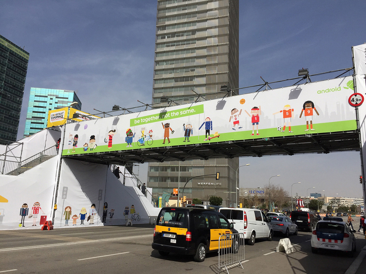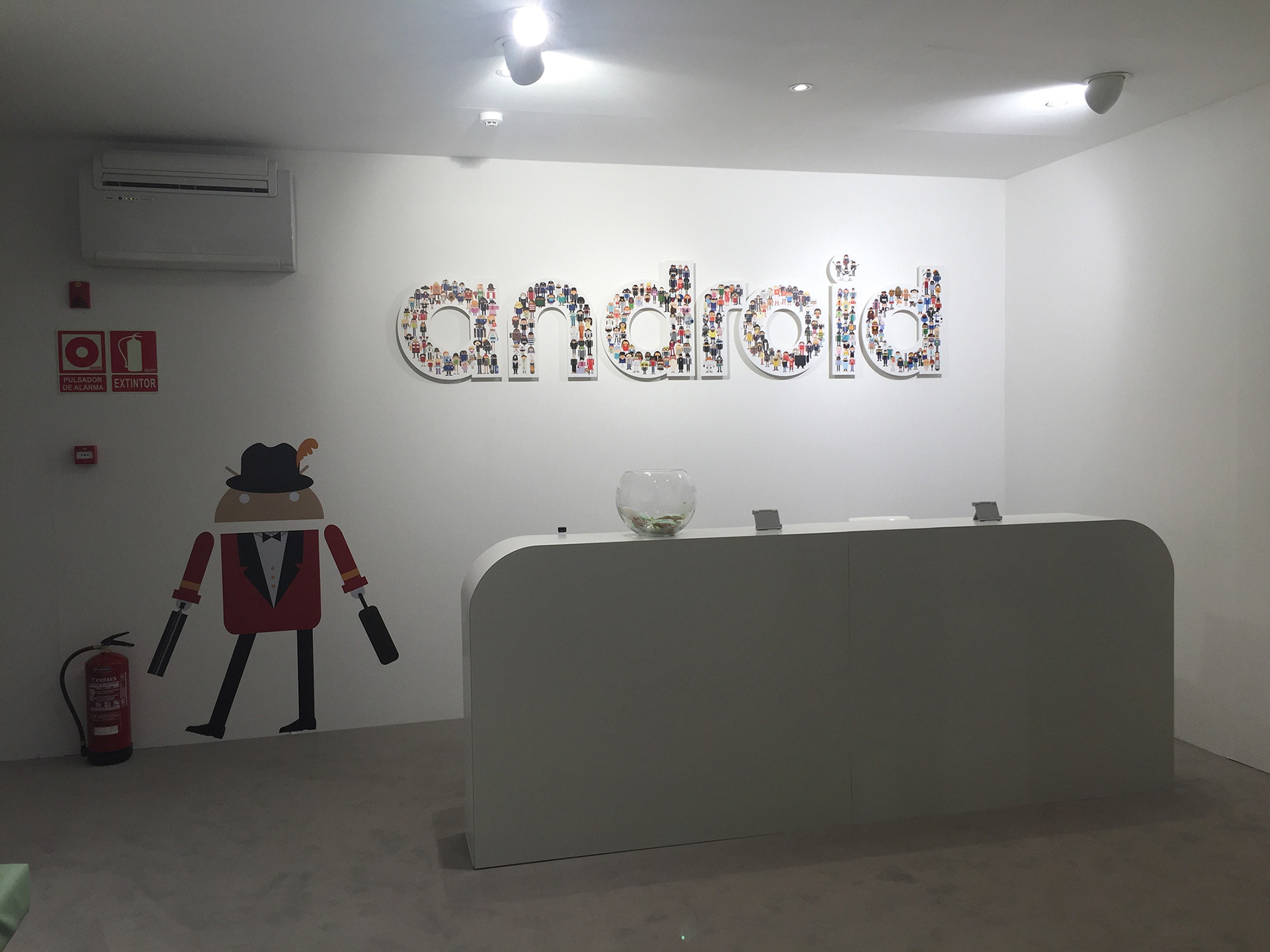 Design of meeting areas, multiple external spaces and merchandising for Google within the MWC in Barcellona