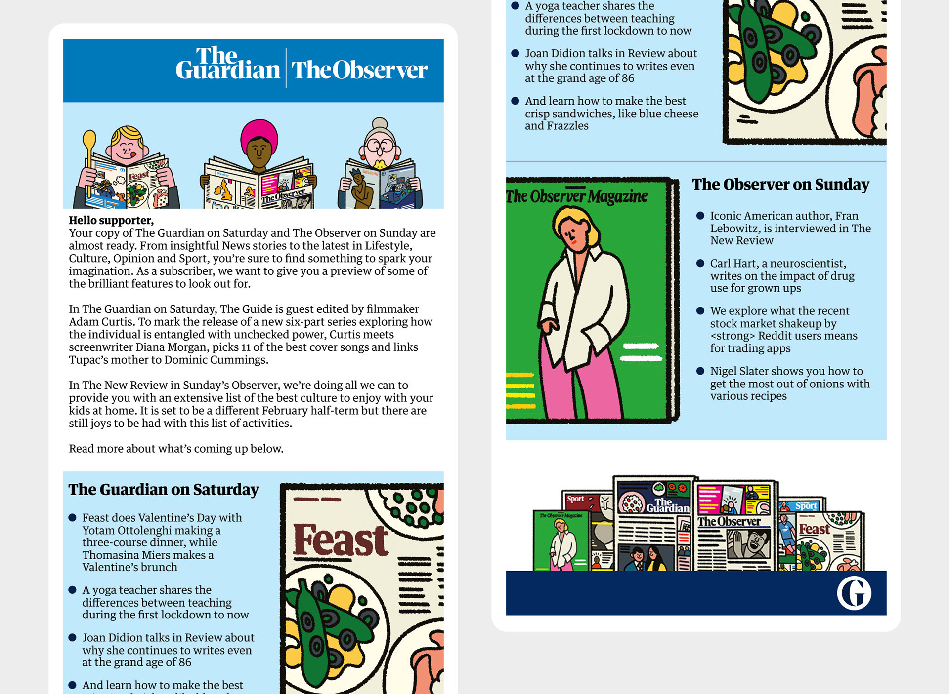 A5 Digital Invite and some email design for the Guardian’s subscribers